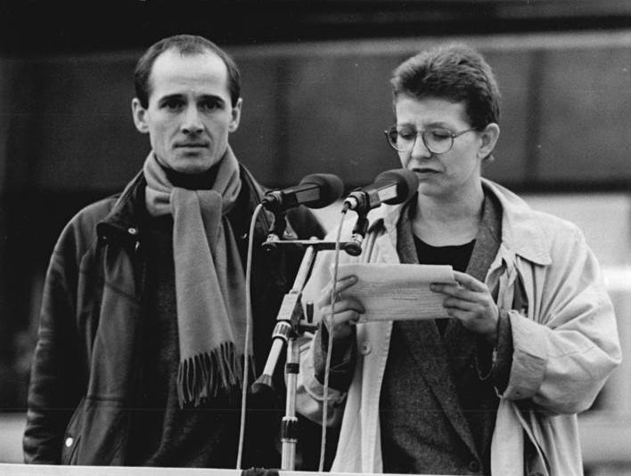 It’s an especially stark image to revisit this week as Germany prepares to celebrate 35 years since the fall of the Berlin Wall. I was recently talking with a friend about the 2006 film The Lives of Others, and its star, the late Ulrich Mühe. In the waning years of the GDR, Mühe joined the ensemble of the Deutsches Theater in East Berlin. He heard the protest embedded in the music. “For us actors it was an island,” he said of the theater. “We could dare to criticize.” On November 4, 1989 — 35 years and one day ago — he spoke at a demonstration on Berlin’s Alexanderplatz, calling for democratic reforms that protected the GDR’s constitutional rights to freedom of expression and assembly. “We also propose a constitutional amendment,” Mühe stated to thousands of compatriots. “Article 1, Chapter 1: We believe that a party’s claim to leadership must not be prescribed by law. Every claim to leadership must be earned.” This last line gets him the most applause (you can watch the full speech here).