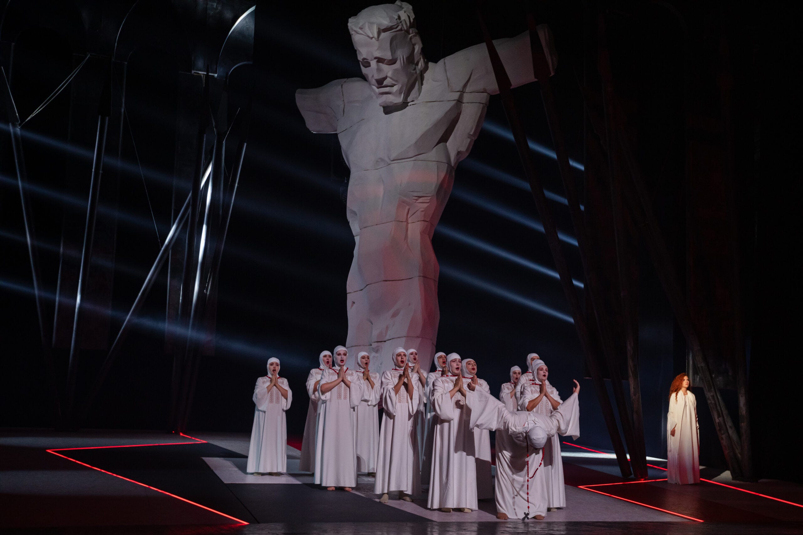 For Poulenc, these characters represented the difficult and at times random circumstances that many ordinary citizens face in times of tyranny. Vovkun, however saw things differently: Since the beginning of Russia’s full-scale invasion of Ukraine, fears of dyversanti — saboteurs working with Russia — have been both widespread and well-founded, especially in Lviv, which sits roughly 70 kilometers from the Polish border. The church hasn’t been spared these collaborators, either: Shortly before rehearsals for the LNO’s Carmélites began, a priest of the Moscow Patriarchate who had provided Russian forces with information and organized sham referendums was released from Ukrainian custody in exchange for 101 POWs.