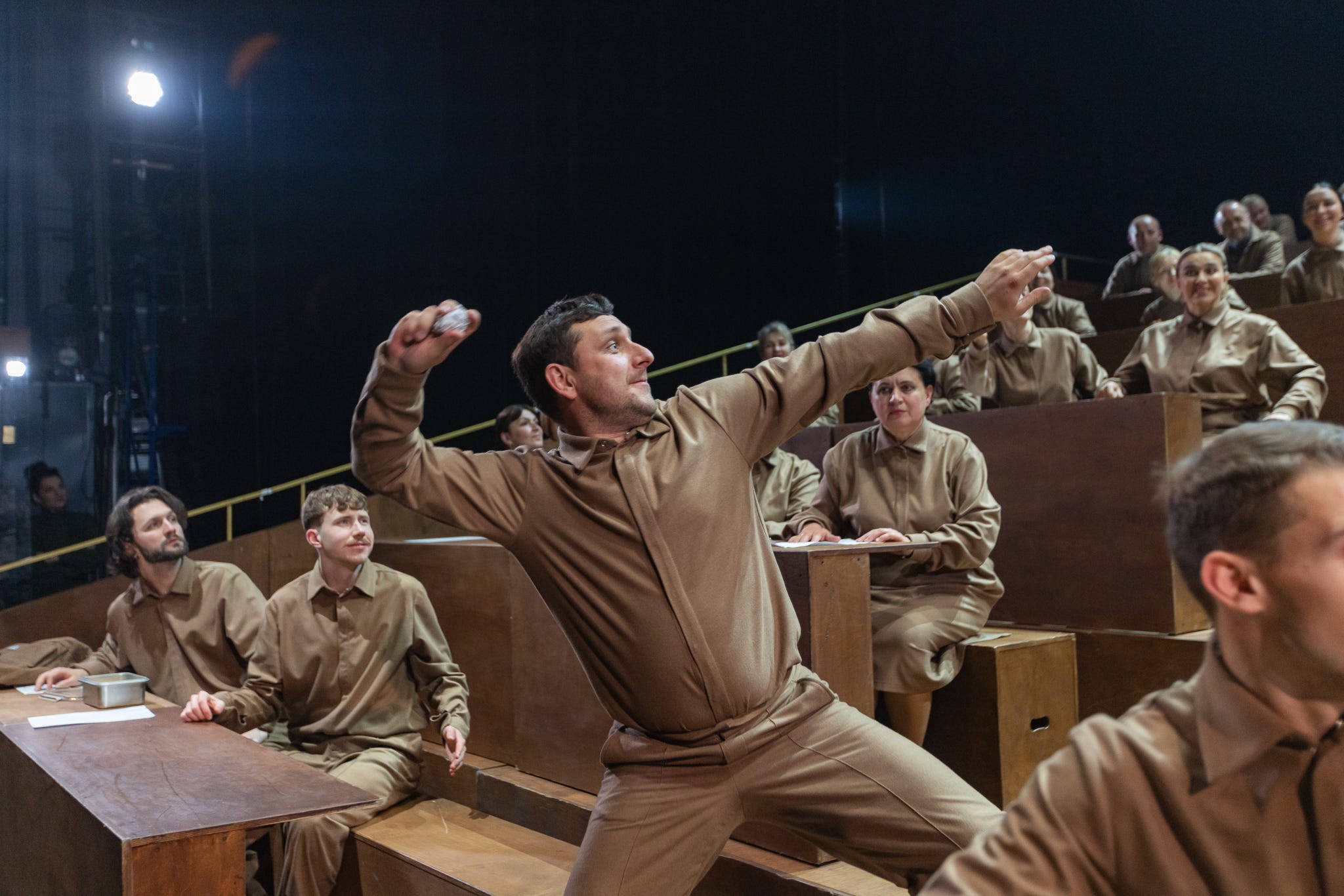 Zolotyy Obruch, which the LNO renders into the great English language as “The Golden Crown,” was performed that Friday, in a new production by Ukrainian theater director Ivan Uryvskyi that transposed Lyatoshynsky’s libretto (borrowed from the Ivan Franko novella Zakhar Berkut) into a faceless authoritarian setting, one that reminded me of the opening classroom scene in The Lives of Others — a stark contrast to the democratic principles upheld by the inter-Carpathian network of villages via the metaphorical golden crown. Lyatoshynsky, who had been pressured by the Soviets to revise his opera after having his music denounced for “formalism” (the same allegation that was levied against Shostakovich in an infamous 1936 Pravda editorial). It was, in Uryvsky’s words, “a clear and very serious example of how the system tried to control creators.”