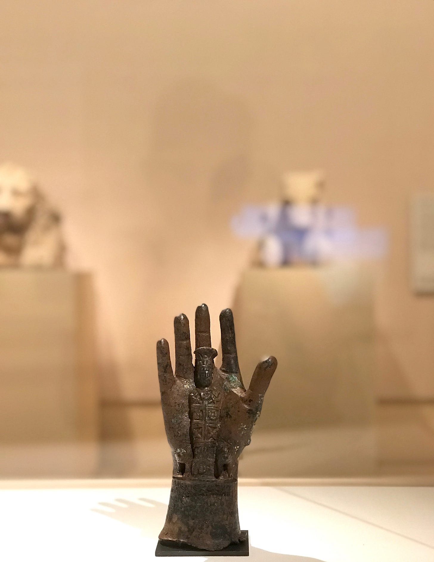 I’ve written elsewhere about the overlap of culture, conquest, and narrative that covered the Mediterranean region. In a similar vein, Met curator Michael Seymour stressed that “The World Between Empires” was not about the empires, but rather about the people who lived within them and who forged “a complicated patchwork” of identity amid the overlap of dominions. Pieces like an alabaster statuette of a nude goddess (eyes and navel gleaming with ruby inlay), are object lessons in these overlaps and their complexities. Is the goddess Aphrodite? Venus? Ishtar? It’s a question of divine identity that doesn’t necessarily need an answer (especially in 2020).